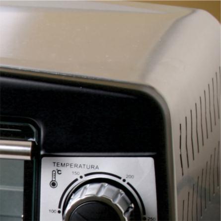 - Timer sonoro de 60 minutos: desliga o forno ao final do tempo programado, tocando o alarme quando o alimento está pronto.