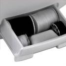 - Conta também com enrolador automático de bobina e controle de tensão de linha.